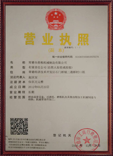 企業(yè)堅(jiān)持“質(zhì)量、口碑就是我們的生命”的原則,嚴(yán)格執(zhí)行質(zhì)量標(biāo)準(zhǔn)檢驗(yàn)體系。生產(chǎn)的"鼎糧"牌系列產(chǎn)品,產(chǎn)品質(zhì)量優(yōu),性價(jià)比高,深受廣大新老客戶的青睞,通過了各級部門的鑒定認(rèn)可,立式、臥式液壓榨油機(jī)均榮獲農(nóng)機(jī)推廣證。